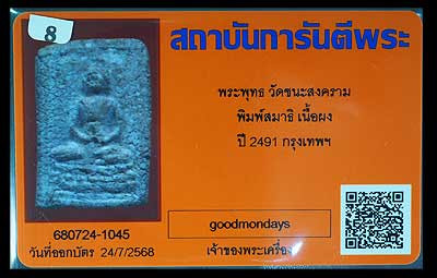 พระโพธิจักรแม่ชีบุญเรือน เนื้อดิน ปี2499 (พร้อมบัตรรับรอง)ครับ |