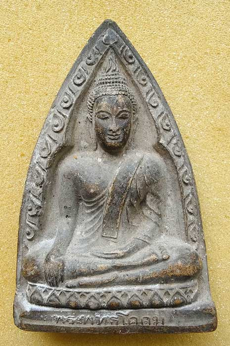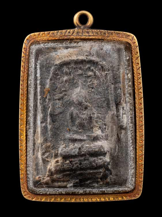 พระผงกระดูกผี พิมพ์พระร่วงนั่ง ลงรักปิดทองเก่า หลวงพ่อพุ่ม วัดโคกสวาย 2473 |