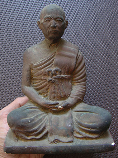 พระสังกัจจายน์ไม่ทราบที่ เนื้อทองเหลืองเก่า ความสูง เกือบ 6 นิ้ว หน้าตัก 4 นิ้วครึ่ง |