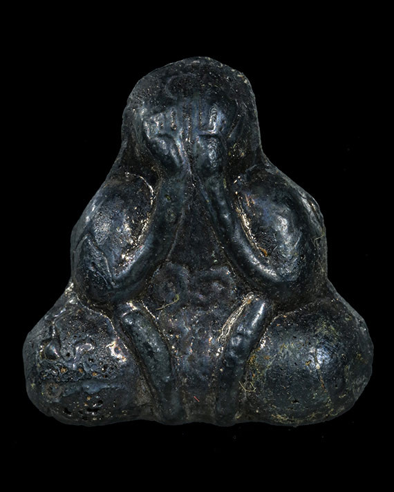 พระปิดตาเนื้อตะกั่วหลังยันต์ไม่ทราบที่ครับ |