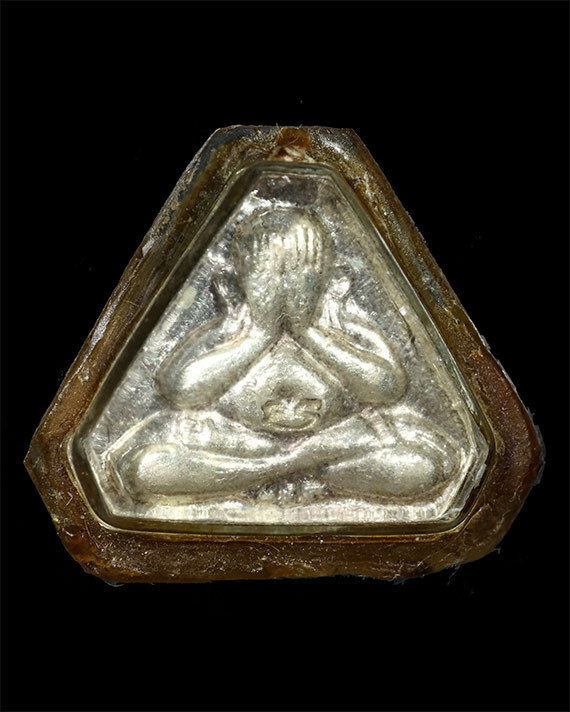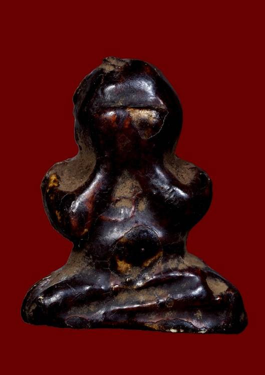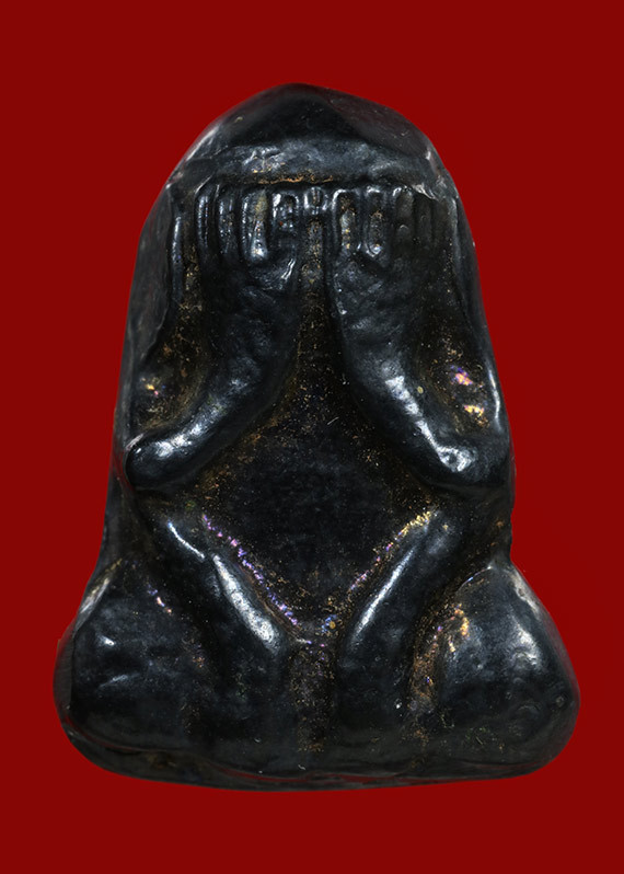 พระปิดตาเนื้อผงเคลือบรักเก่าไม่ทราบที่ |