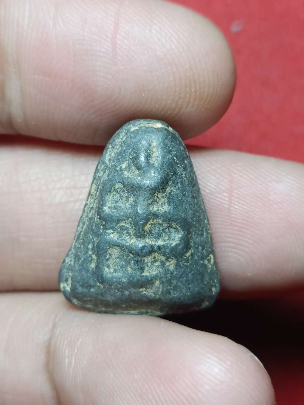 พระปิดตาเนื้อแร่หลังยันต์ไม่ทราบที่ครับ |