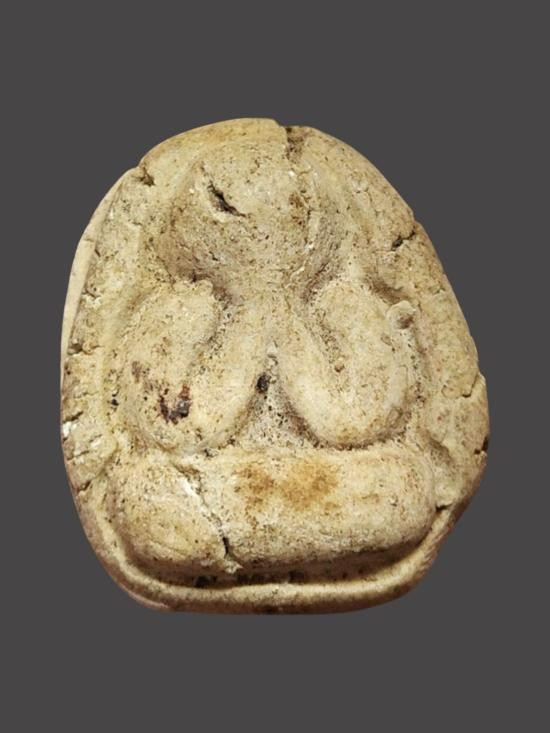 พระปิดตา(เนื้อตะกั้วหลังเรียบ)(ไม่ทราบที่)สภาพเก่ามีอายุ |