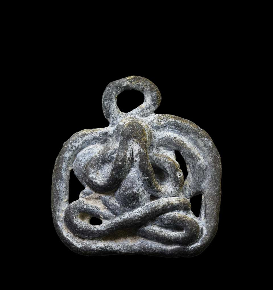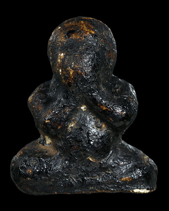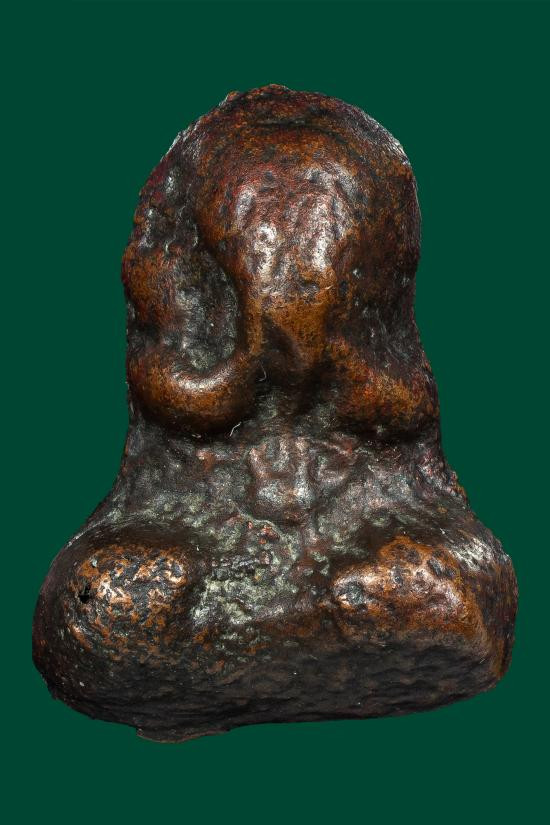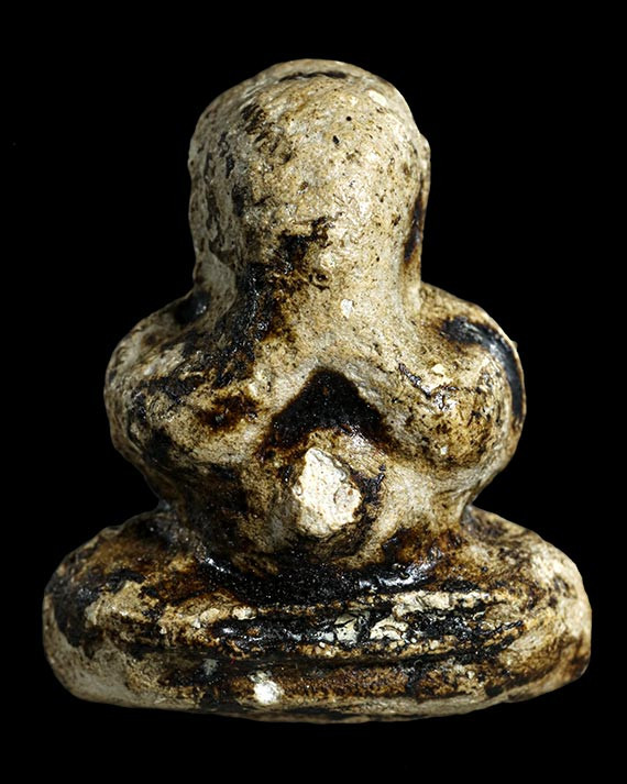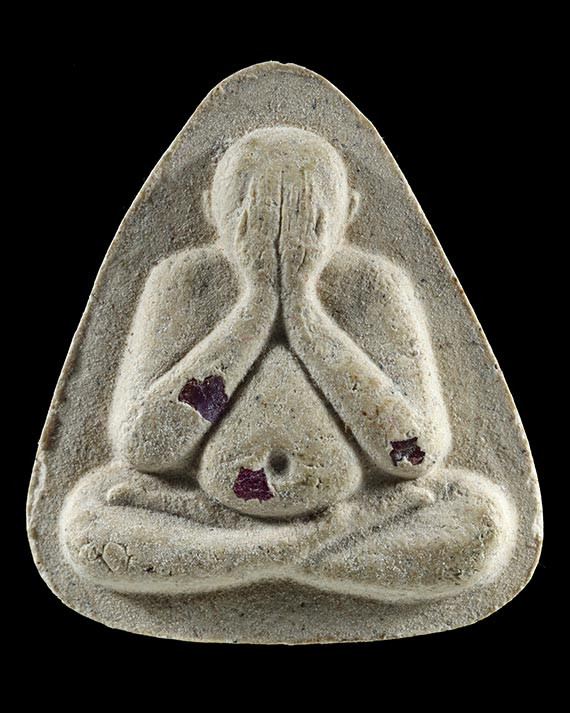 P10 พระปิดตา ด้านหลังเรียบแห้ง มีเนื้อส่วนผสมว่านผงเม็ดกรวดเล็ก ๆ ตามธรรมชาติของพระเนื้อเก่า ไม่ทราบที่ (เคาะเดียวแดง) |