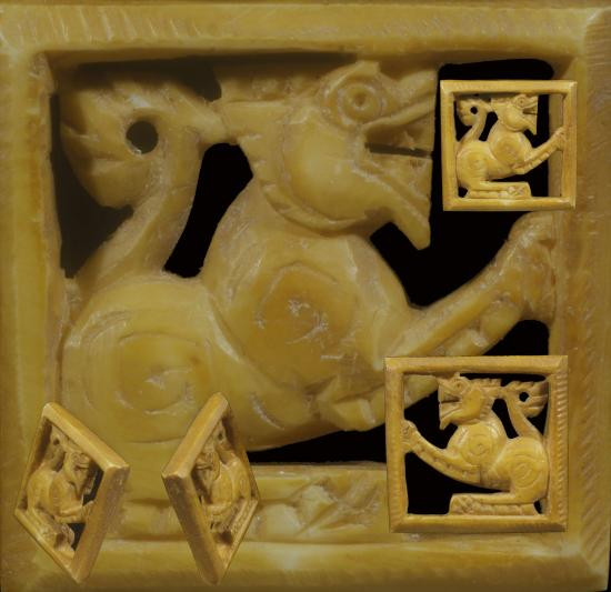 พญาครุฑ งานลงยา แกะจาก กรอบทอง |