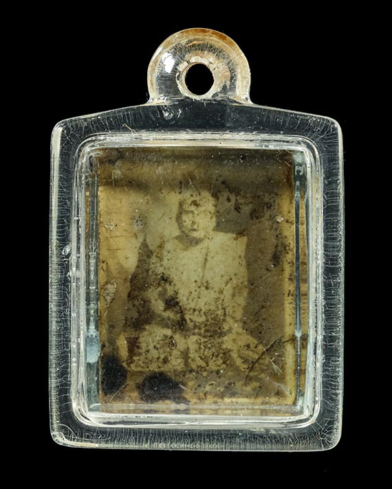 เครื่องรางเก่าเลี่ยมพลาสติกไม่ทราบที่ |