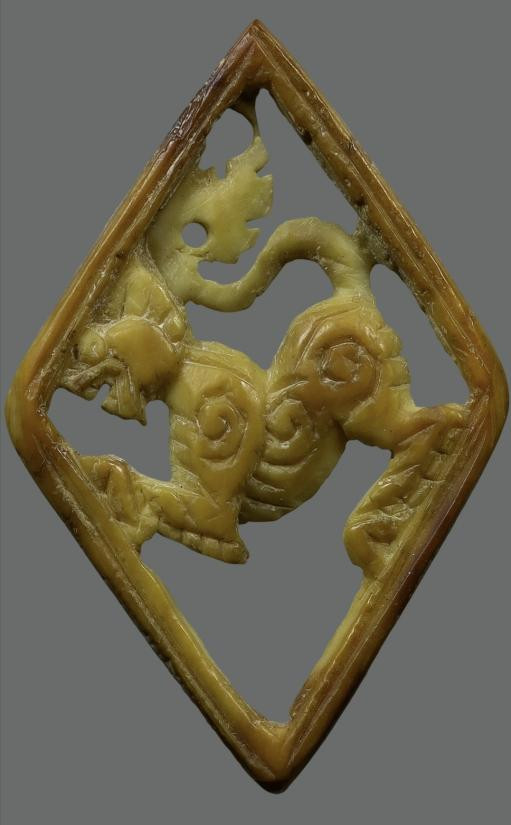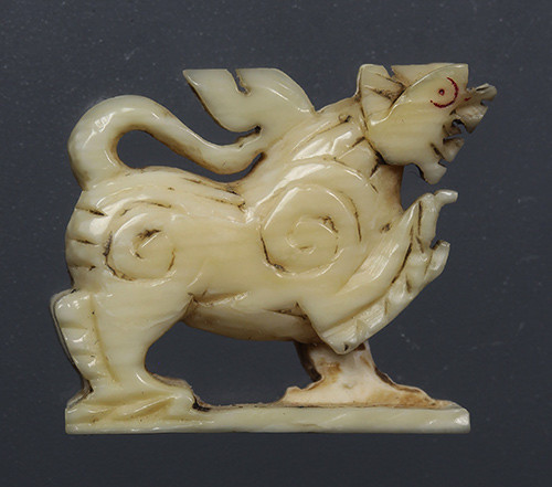 สิงห์แกะศิลป์โบราณ ตาฝังพลอย เก่าเข้าเลี่ยมกันน้ำไว้แล้ว ใต้ฐานมีจาร(ไม่ทราบเป็นงาหรือเขาหรือกระดูก) |