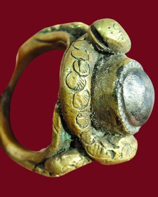 แหวนหล่อโบราณเก่า หัวแหวนเป็นเม็ดเงินโบราณ