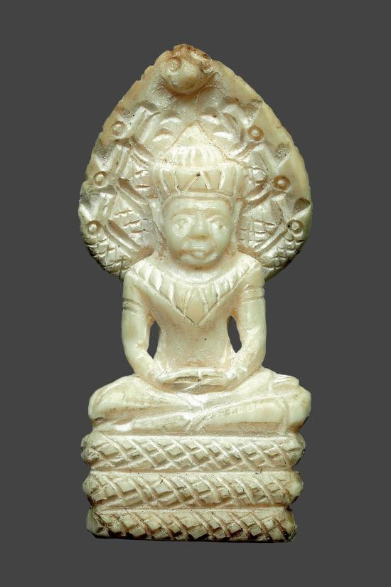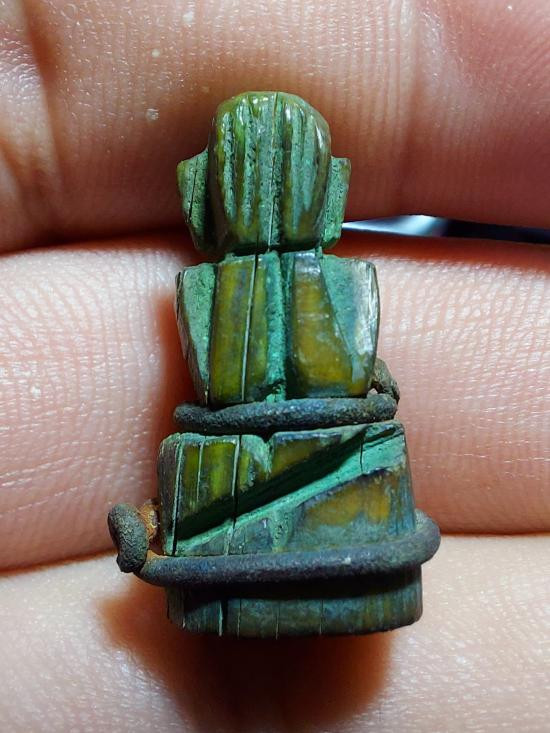 พระพุทธเนื้อหินคล้ายหยก ใต้ฐานจารคำว่าเขมโก |