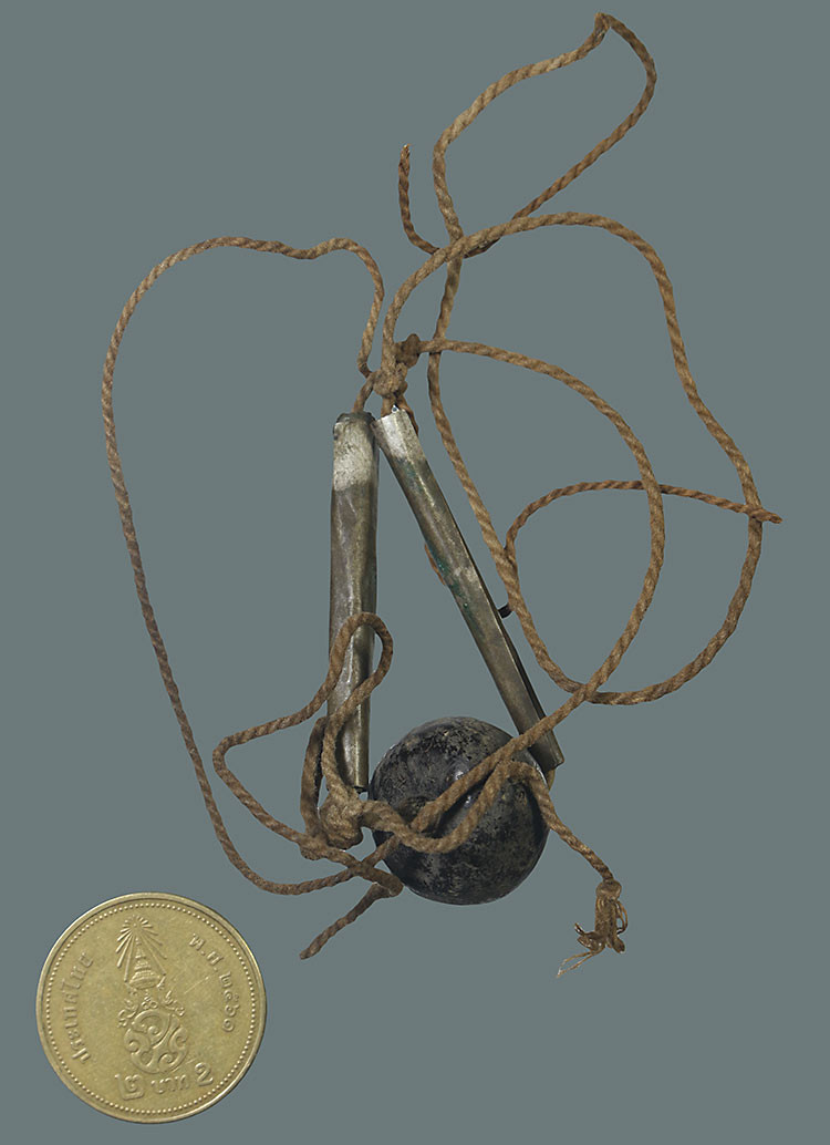 วัดใจ**เครื่องราง เม็ดประคำเนื้อผงยาหุ้มเงินโบราณแกะลายเก่า ไม่ทราบที่....ตามสภาพครับ |