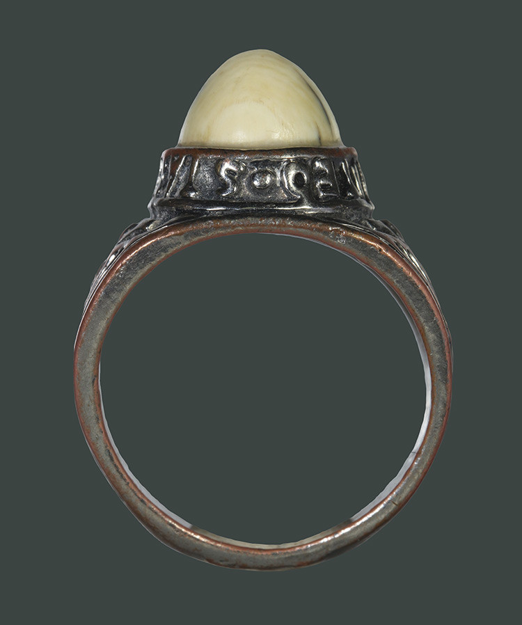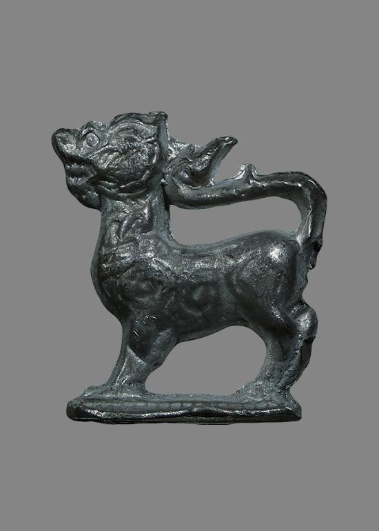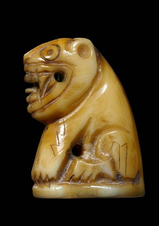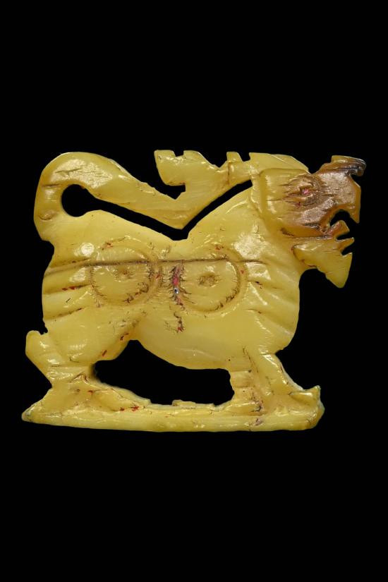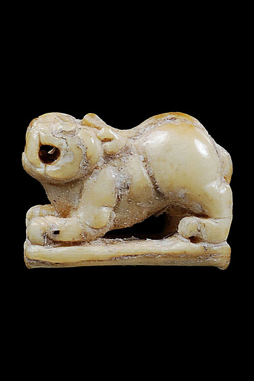 เสือแกะ เนื้อกระดูกกรามช้าง มีจารแต่เลือน ใต้ฐานจะเห็นจารชัดหน่อย สภาพผ่านศึกค่ะ |