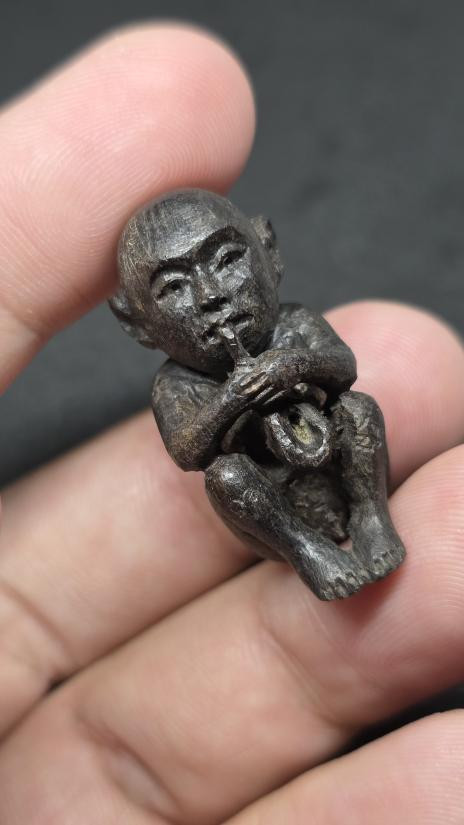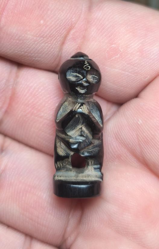 #เคาะเดียวแดง# หนุมานงาแกะเก่าตัวจิ๋ว เล็กเท่าเหรียญบาท ศิลป์สวย ไม่ทราบที่ครับ |