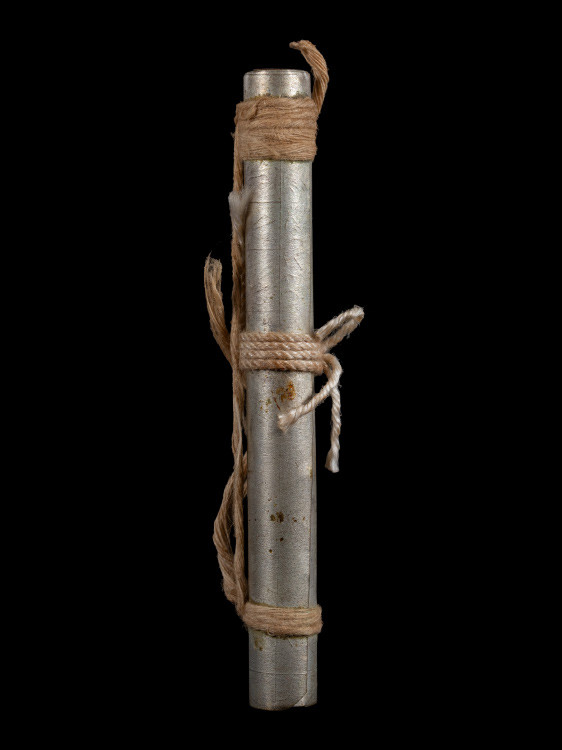 ตะกรุดทองแดง ไส้ตะกั่ว ไม่ทราบที่ มีจารด้านนอก |