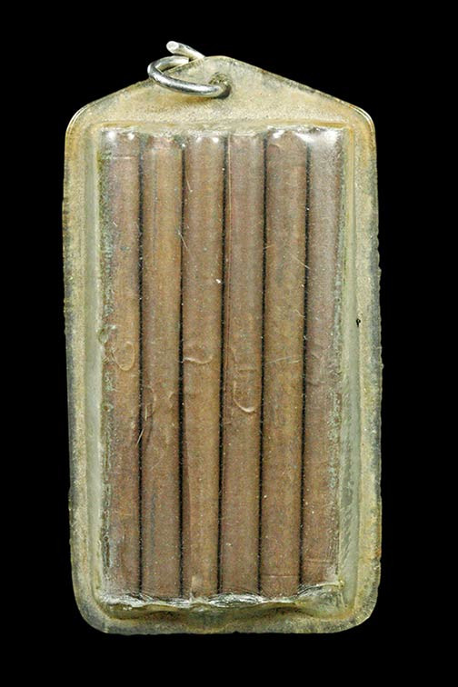 ตะกรุดไม่รู้ที่ น้ำหนักค่อนข้างตึงมือ ได้มาแบบนี้วัดใจ 100 แดงครับ |