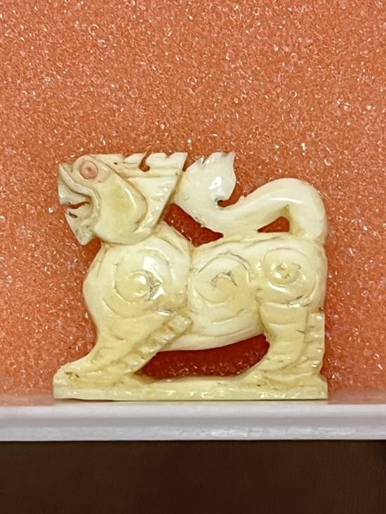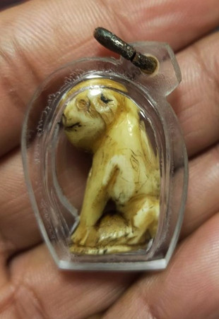 สิงห์งาแกะ ใช้เครื่องแกะลาย ไม่ทราบที่ ไม่เก่ามาก ไม่แพง ขนาดเท่าเหรียญสิบบาท |