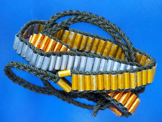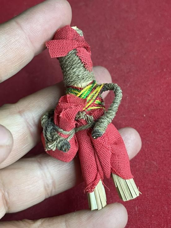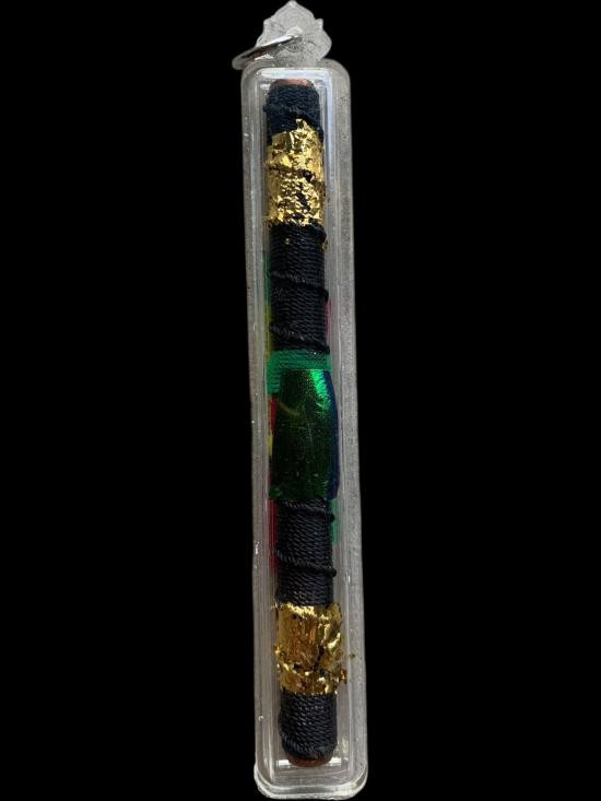 วัดใจ**เครื่องราง ตะกรุดเนื้อทองแดงถักเชือก ลงชาดแดงเก่า ยาว 4.5นิ้ว ไม่ทราบที่....ตามสภาพครับ |