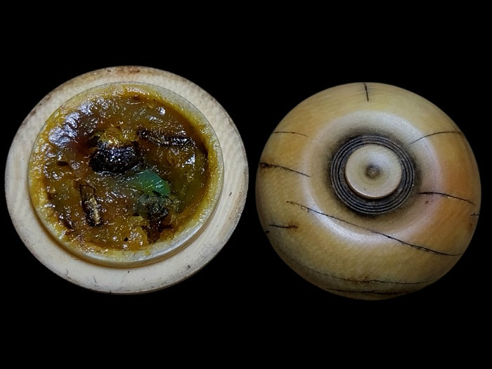 ปลักขิก แกะจากเขา ขนาดยาว 3 นิ้ว กว้าง 1 นิ้ว มีรอยจาร เก่ามีอายุ สภาพสวยครับ |