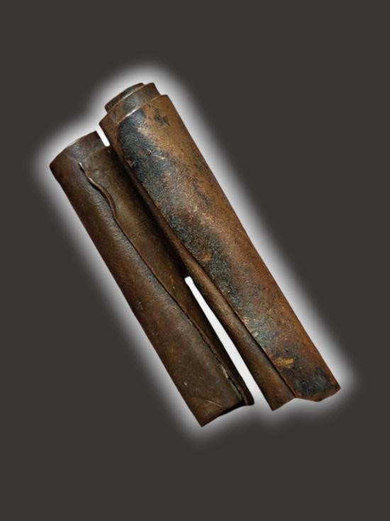 ตะกรุดเนื้อตะกั่ว ตอกโค๊ต 3 โค๊ต ไม่ทราบที่ครับ |