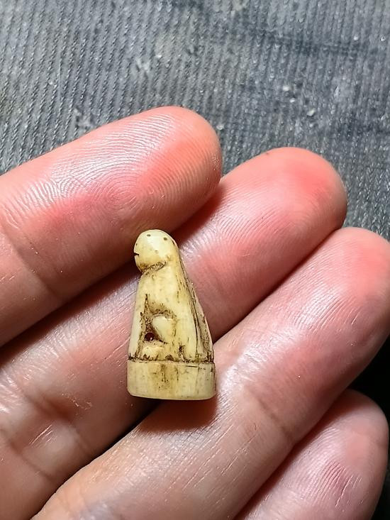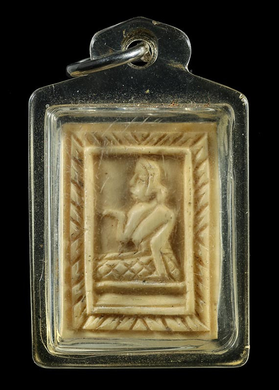สิงห์งาแกะ ใช้เครื่องแกะลาย ไม่ทราบที่ ไม่เก่ามาก ไม่แพง ขนาดเท่าเหรียญสิบบาท |