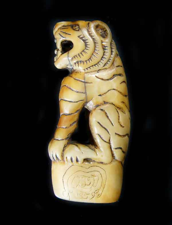 ***เสืออ้าปาก กระดูกเเกะ เก่า แท้ ไม่ทราบที่ครับ*** |