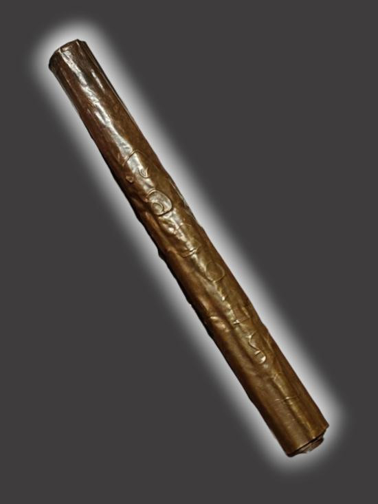 ตะกรุดทองแดงไม่ทราบที่ มีรอยจาร ยาวประมาณ5นิ้ว พระบ้านเหมามาจากทางขอนแก่น สวยเดิม ไม่เคยคลี่ออกดู ดูจากอักขระที่จารน่าจะสายอีสาน พระบ้านๆ เคาะเดียวแดง |