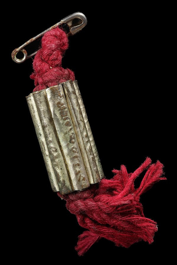 วัดใจ**เครื่องราง ตะกรุดถักเชือกเนื้อทองแดงเก่า ยาว 5.นิ้ว ไม่ทราบที่....ตามสภาพครับ |