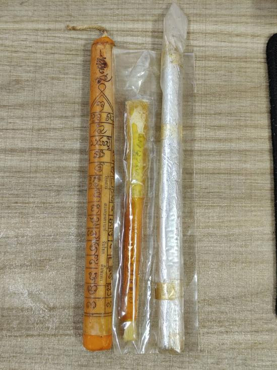 R55.วัดใจ!! เทียน!! ไม่รู้ที่ ยก 3 เล่ม ใครชอบจัดไป พิจรณาตามภาพครับ เเท้เเน่นอน เหมาบ้านมาลงแบ่งปันวัดใจเท่าไหนเท่านั้นครับ เคาะเดียวเเดง |
