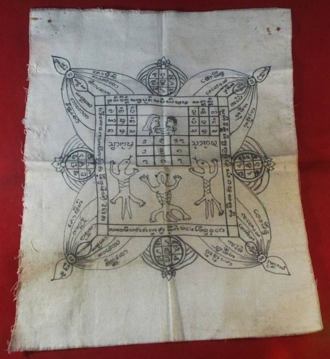 ผ้ายันต์จารมือเก่า ไม่ทราบที่ครับ |