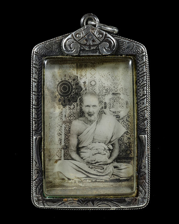 ภาพพระเกจิเก่า ไม่ทราบที่ เลี่ยมจับขอบเงิน |
