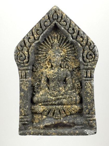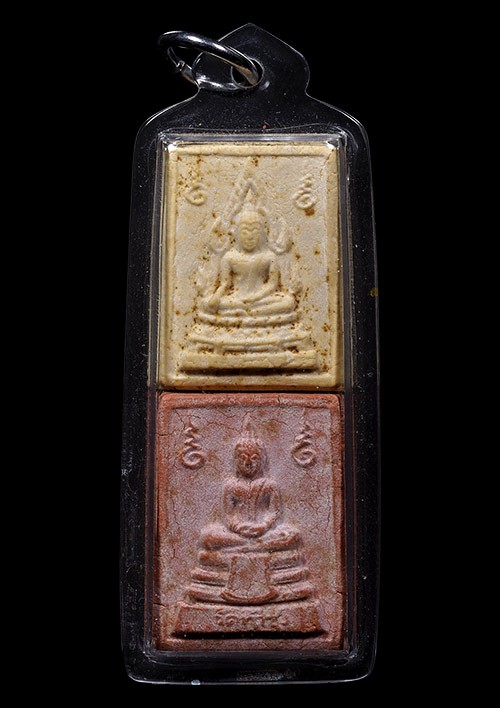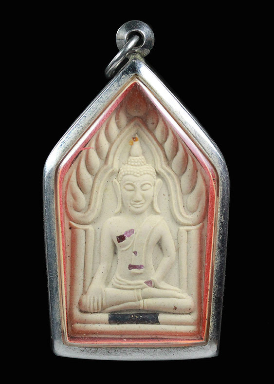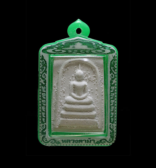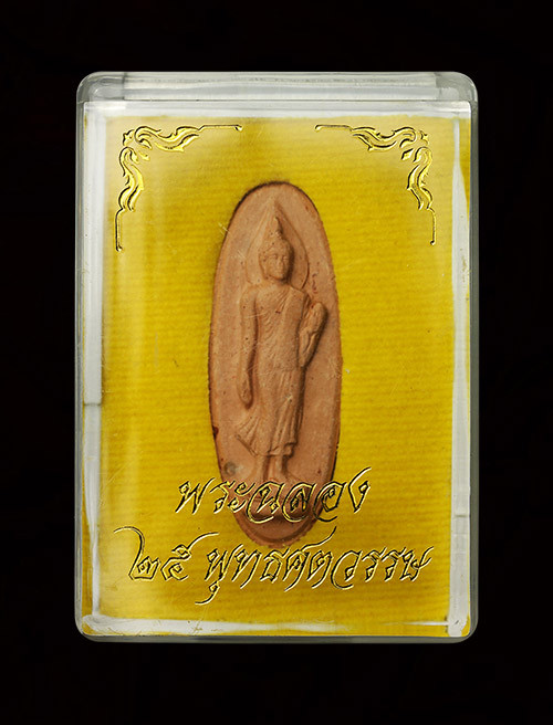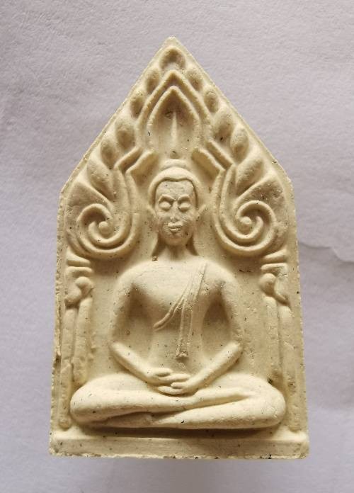 พระผงจันทร์ลอย หลังพระเจ้าห้าพระองค์ หลวงปู่ละมัย สหธรรมิก หลวงปู่หมุน ปี2543 สวนป่าสมุนไพร จ.เพชรบูรณ์