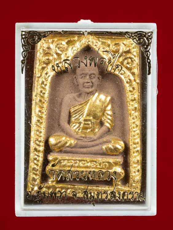 พระสมเด็จแหวกม่าน ย้อนยุค ปี 39 หลวงพ่อกวย วัดโฆสิตาราม หลังมีตราปั๊ม ไม่มีกล่อง พร้อมบัตร G