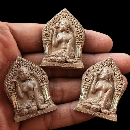 แม่นางกวักทิพย์สมบัติ เนื้อผงว่านยาวาสนาพารวย ฝังตะกรุดเงิน 3 ดอก ปี 2553 หลวงปู่น้อย วัดบ่อหลวง จ.เพชรบุรี พร้อมซองรูปใบฝอยเดิมจากวัด |