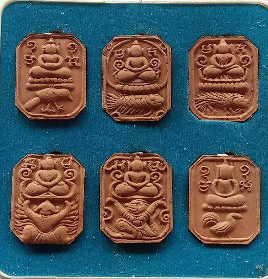 พระปิดตาห้าเหลี่ยม หลังยันต์ หลวงพ่อตาบ วัดมะขามเรียง " เนื้อผงพุทธคุณ ปี 2531 (6องค์) |