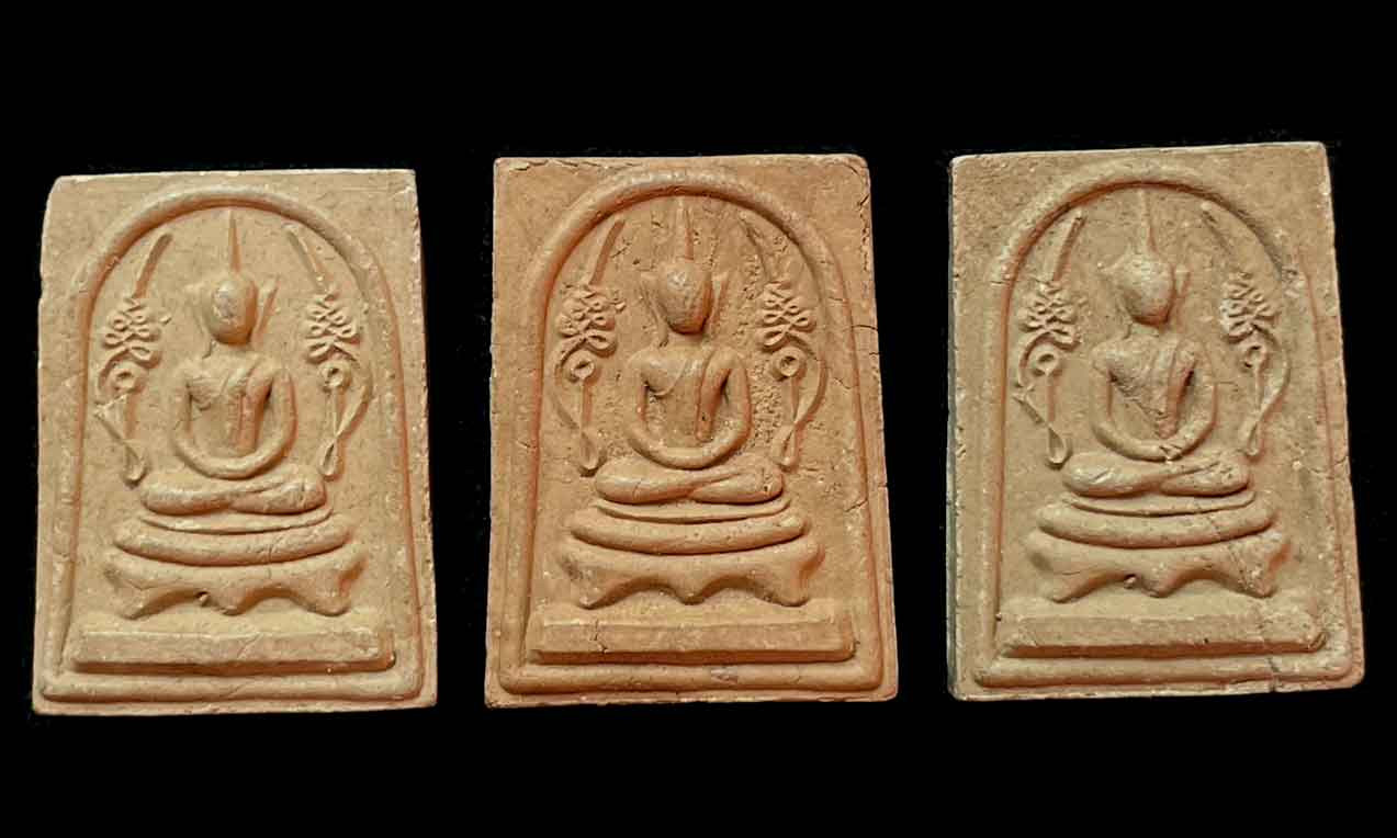 วัดใจ 3 องค์ สมเด็จขาโต๊ะ หลังขวัญถุง ที่ระลึกในงานปิดทองฝังลูกนิมิต หลวงปู่สิงห์ วัดเขาหวาย จ.ระยอง 2561 กล่องเดิม |