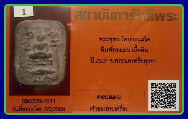บัตรการันตี ทรงเม่น ผงเต็ม -600-พระหลวงพ่อปาน วัดบางนมโค อยุธยา พ.ศ 2527 |