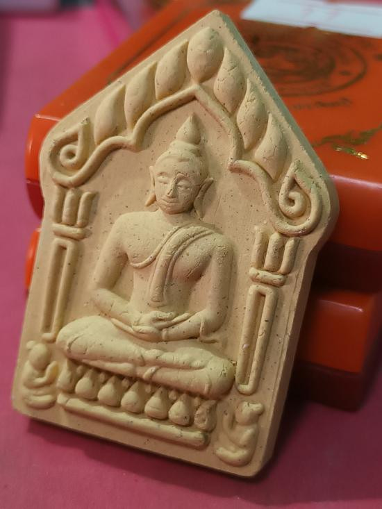พระพุทธมหาปฐวีธาตุ พิมพ์หลังเรียบ เนื้อดิน ปี 2530 หลวงปู่คำพันธ์ วัดธาตุมหาชัย จ.นครพนม + บัตรรับรองพระแท้การันตีพระ |