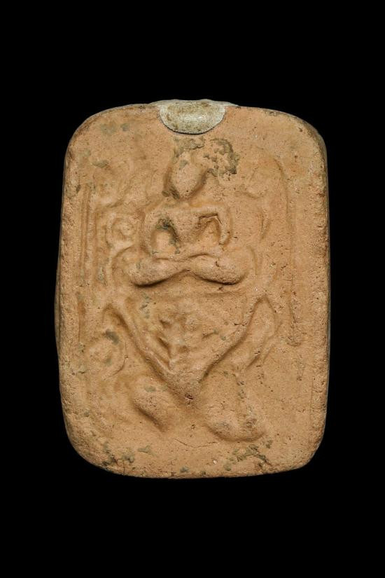 พิมพ์ฤาษีท่องสวรรค์ หลวงพ่อฤาษีลิงดำ ปี2531 เนื้อดินเผา ด้านหลังปั้ม มั่งมีศรีสุข |