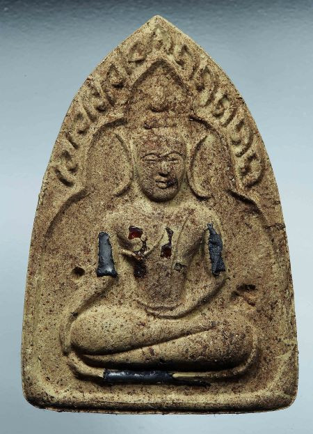 พระผงสมเด็จกลีบบัว (เนื้อกระเบื้องหลังคาโบสถ์) วัดบวรมงคลราชวรวิหาร (วัดลิงขบ) บางพลัด กรุงเทพ |