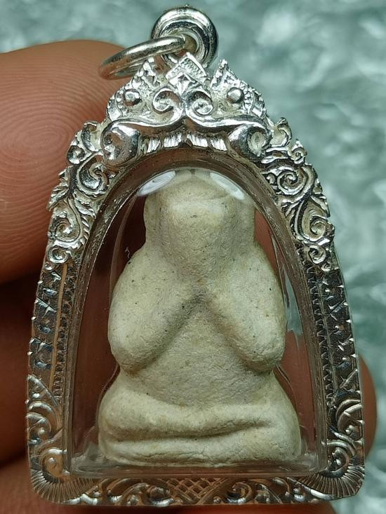 พระปิดตามหาลาภ พิมพ์ลอยองค์ หลวงปู่ศรี(สีห์) วัดสะแก อยุธยา สร้างด้วยเนื้อผงพุทธคุณผสมปูน ด้านหลังมีรอยจาร ก้นตอกโค๊ต สภาพสวยสมบูรณ์ พร้อมเลี่ยมเงินงานมืออย่างดี |