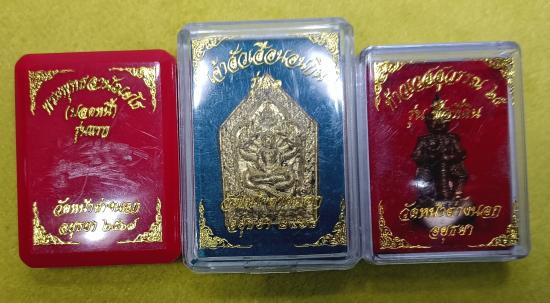 พระผงเจ้าสัวเสือนอนกิน เนื้อผงเศรษฐีทั้ง 5 + พระผงหลวงพ่อปลดหนี้ เนื้อผงยาจินดามณี + รูปหล่อท้าวเวสสุวรรณ รุ่นซื้อที่ดิน หลวงพ่อแม้น วัดหน้าต่างนอก (เคาะเดียวครับ) |