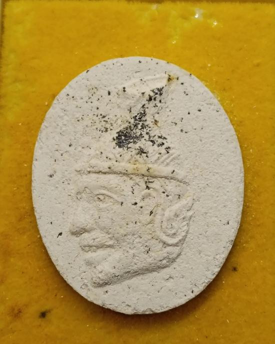 ขุนแผนพรายมงคล วัดหนองสะเดา สระบุรี ผสมผงพรายกุมาร ผงเถ้าอังคารของหลวงปู่ทิม และผงอัฐิของหลวงพ่อยอด วัดหนองปลาหมอ จ.สระบุรี หลังฝังตะกรุดเงิน |