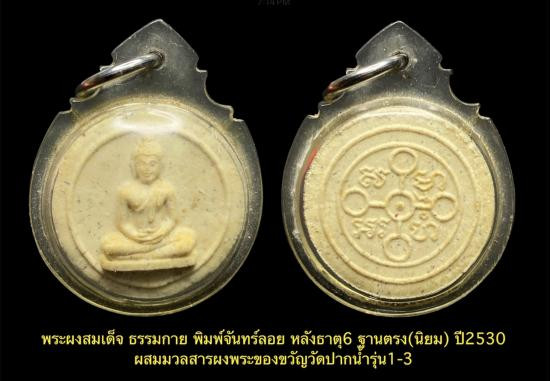 พระผงสมเด็จ ธรรมกาย พิมพ์จันทร์ลอย หลังธาตุ 6 ฐานตรง(นิยม) ปี2530 ผสมมวลสารผงพระของขวัญวัดปากน้ำรุ่น 1-3