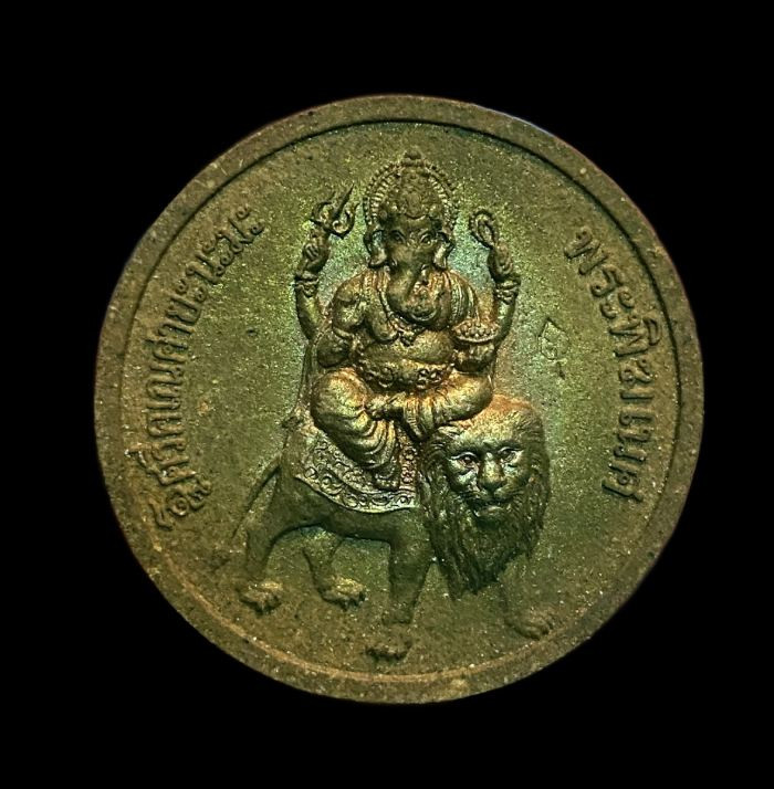 พระพิฆเนศประทับสิงโต หลวงพ่อรวย วัดตะโก จ.พระนครศรีอยุธยา เนื้อผง รุ่นรวยสมปรารถนา พระสวย ปี 2551 |