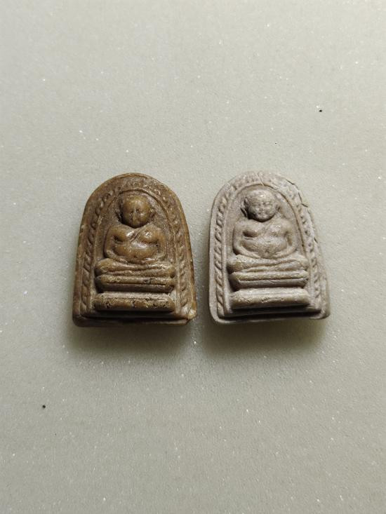 รูปเหมือนจิ๋ว พิมพ์สามเหลี่ยมนั่งเต็มองค์ หลวงปู่ชื้น ปี 2535 เนื้อดิน + รูปเหมือนใบโพธิ์ พิมพ์จิ๋ว.เนื้อดิน.หลวงพ่อชื้น วัดญาณเสน ปี 34 |