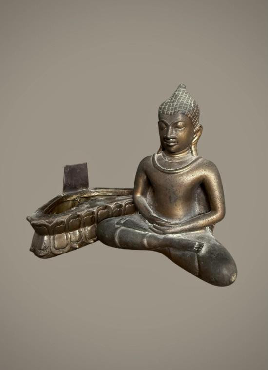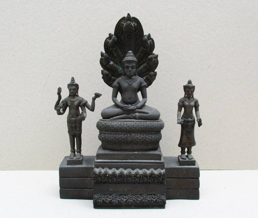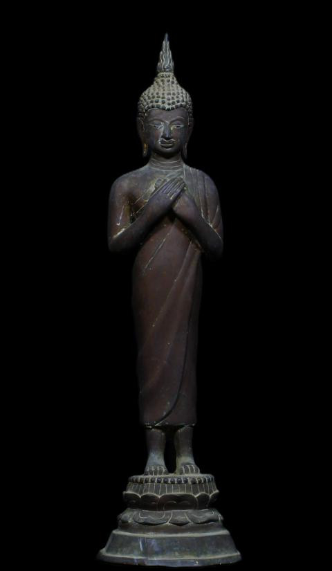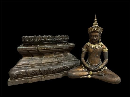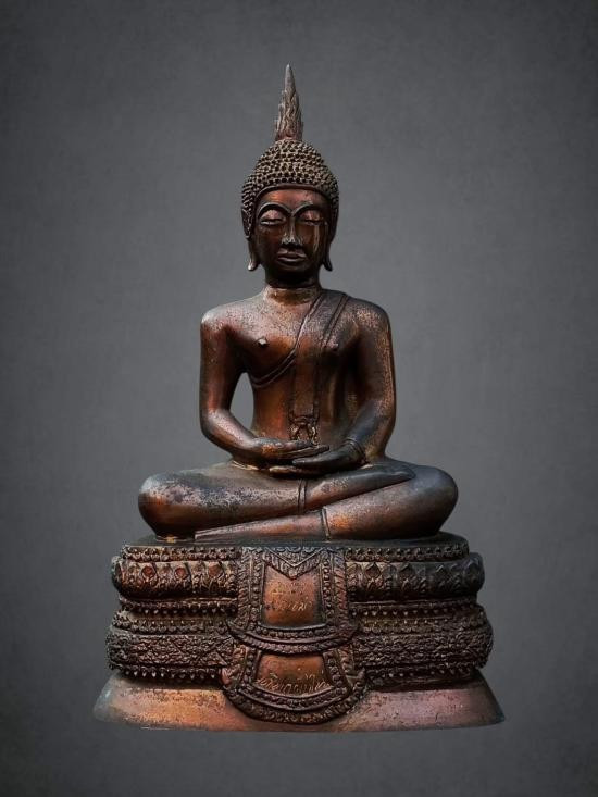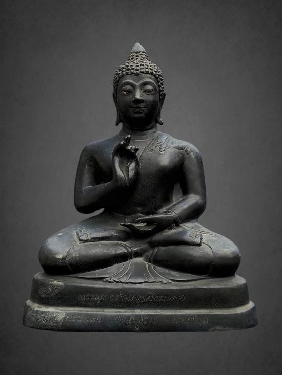 พระพุทธพนมรุ้ง พิธีมหาพุทธาภิเษก พ.ศ.2532 ความสูงรวมฐาน 10 น ิ้ว เนื้อโลหะรมมันปูผิวหิ้งสภาพสวย !! |