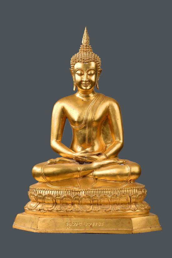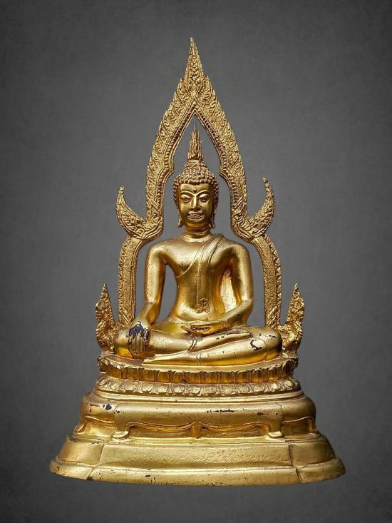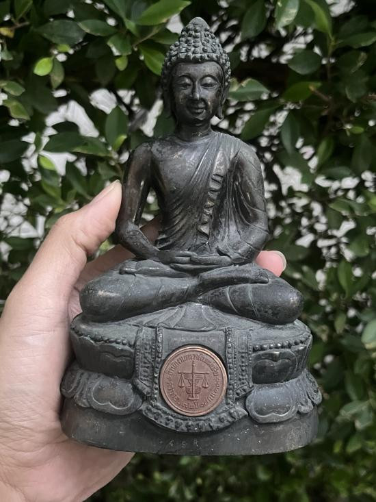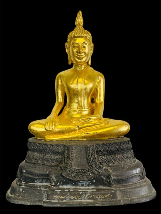 พระสัมพุทธภูธรินทร์ พระบูชารุ่นแรกของกรมตำรวจ ในหลวงรัชกาลที่ 9 เสด็จเททอง พ.ศ.2516 หน้าตัก 5 นิ้ว เนื้อโลหะรมมันปูผิวหิ้ง ดินไทยสีดำ-แดง ตอกโค๊ต ตอกเลข หายากครับ !! |