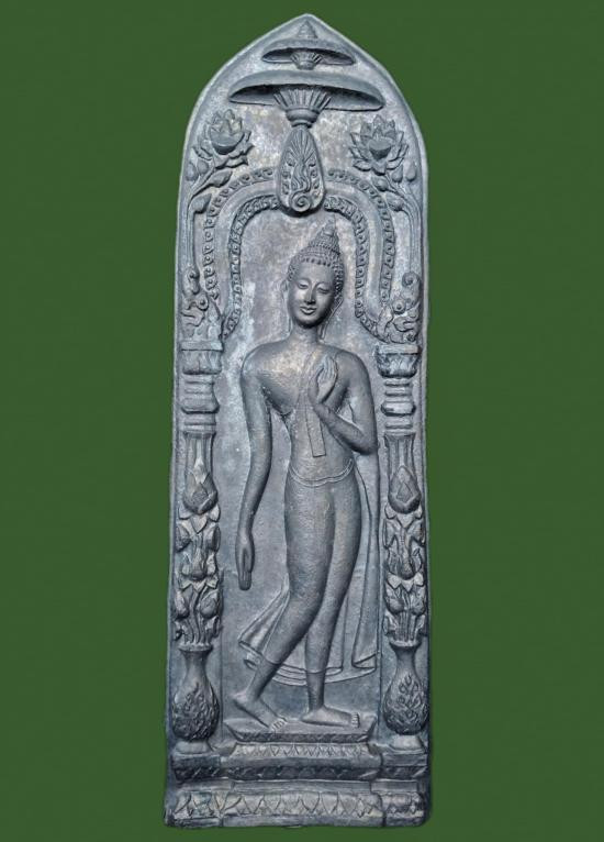 พระลีลากำแพงศอกหลวงพ่อขอมวัดไผ่โรงวัวปี 2505 เนื้อตะกั่ว ความกว้างจากฐานซ้ายถึงฐานขวา8นิ้วจากฐานถึงปลายชุ้มสูง16นิ้ว​ รับประกันตามกฏของเวบครับ |