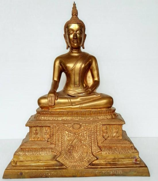 พระบูชาหลวงพ่อมหาสิทธิชัย วัดทองเพลง ธนบุรี ปี 30 หน้าตัก 5 นิ้วทองเหลืองขัดเงา สภาพสวย |