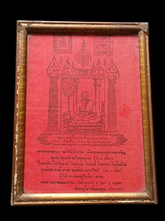 รูปเหมือนบูชาหลวงพ่อสด วัดปากน้ำ ป้ายสีแดงมีหน้าต่าง ปี 2514 |