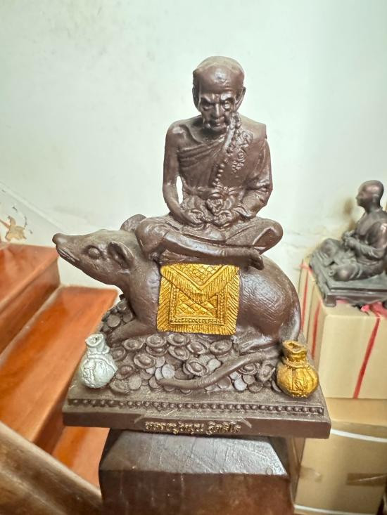 พระบูชา หลวงปู่หมุน พิมพ์ขี่หนู อุดพระผงนั่งตั่ง วัดบ้านจาน ศรีสะเกษ ขนาด 4.5 นิ้ว เนื้อแร่ผสมเหล็กน้ำพี้ รุ่น หมุนพันล้าน ออกปี 2564 วัดบ้านจาน หมายเลข 238 จัดสร้าง 1950 องค์ |